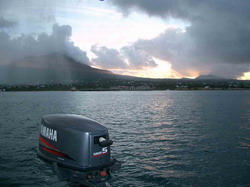 Als der Anker südlich der Mole von Charlestown fällt, wird das Dinghi klar gemacht und ich habe noch eine Chance auszuklarieren - schließlich wollen wir „ zu den schönsten Stränden der Welt“. Statt Wind bringt ein Taxi mich zum Handelshafen - dort kann man noch bis 16 Uhr ausklarieren - und wir wollen ja morgen früh los! Es ist zwar kurz vor 16 Uhr - über UKW Kanal 16 meldet der Fahrer uns an. Es klappt - geduldige, freundliche in tadellos gebügelten Hemden und Blusen gekleidete Beamte gehen mit mir zurück ins Büro. Sogar unsere Trophäen bekommen wir in die Pässe gestempelt. Zurück im Ort - 25 Dollar Taxifahrt für 3 Kilometer - werden im fernen winterlichen Europa, Gattinnen via Kartentelephon überzeugt, daß nichts passiert ist, nur die Handys gehen halt hier nicht. Einkäufe werden getätigt, der Charme von Charlestown wird als widerstehlich empfunden und wir flüchten entschlossen und verholen uns nach Pinners Beach. Zwar nur ein Tagesankerplatz - aber dafür ein Four Season Hotel in Aussicht.